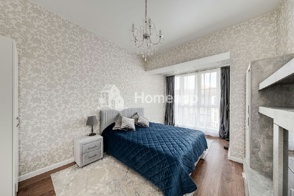 Согласно планировке в квартире 3 спальни, 1 гардеробная, кухня-гостиная, 2 санузла. Мебелирована, с ремонтом. Окна во двор, паркинг наземный у дома. К квартире есть кладовка с окном 13 метров.